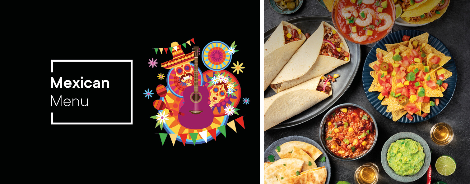 Fiesta flavour awaits! Fiesta flavour awaits! Turn up the heat with our Mexican menu.Call order: R75 eachNachosTacosBurritoQuesadillaBurrito bowl Today’s fillings:Jalapeño chickenCubed lamb Extras: R25 eachJalapeño poppers